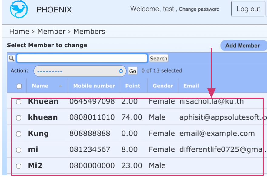 เมื่อ SAVE แล้ว ไปหน้า Members จะแสดงข้อมูลที่ได้ทำการ Add Member ไว้