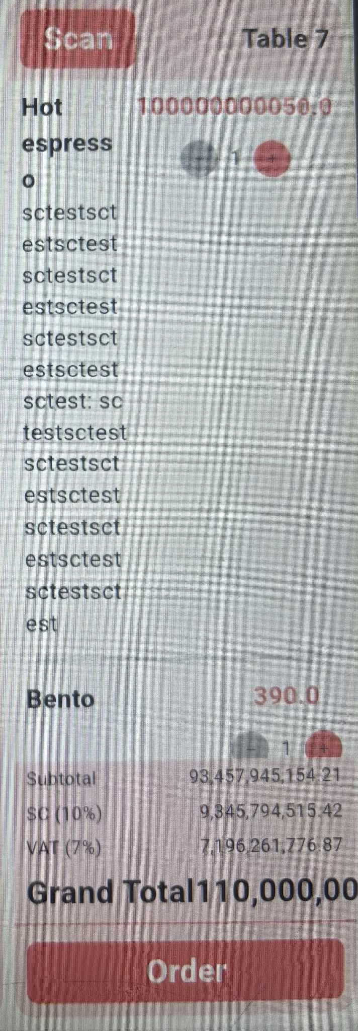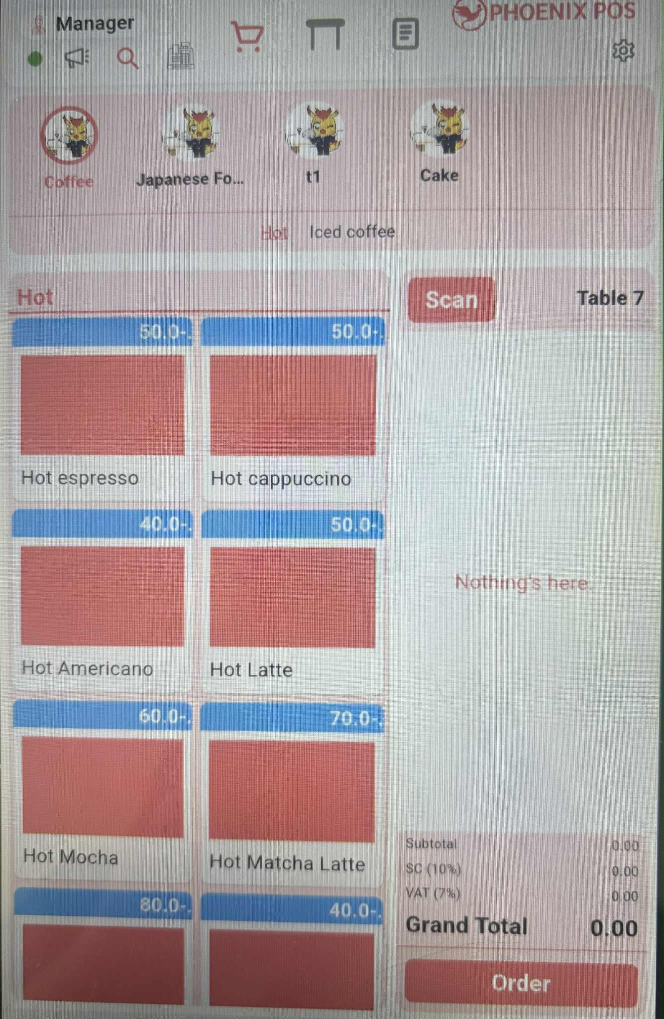 - Order เป็นการสั่ง Order เมื่อกด Order จะไปที่หน้า Menu สามารถสั่งได้ตามปกติ