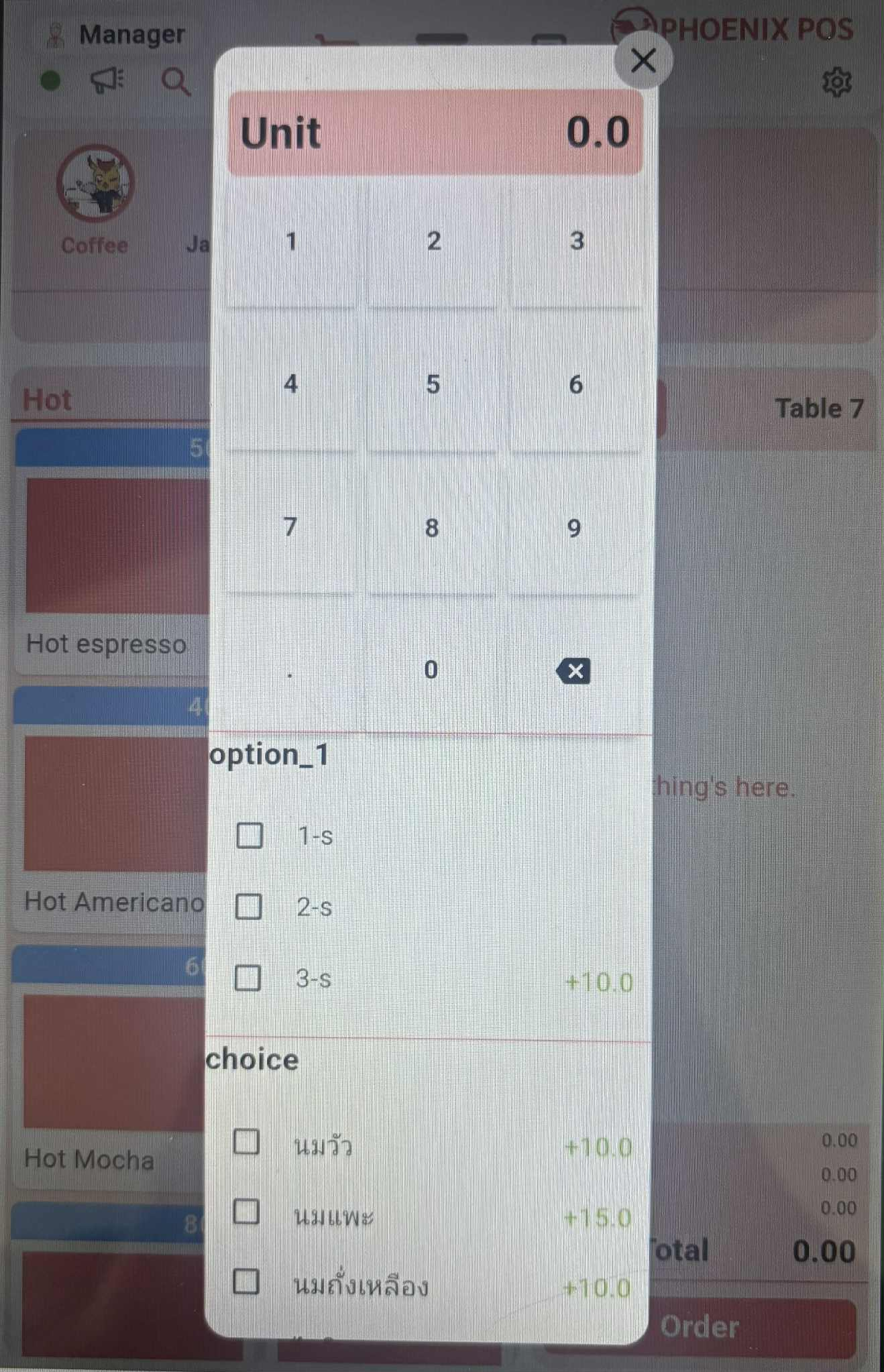 - หาก Menu มี Option ให้เลือก Option ที่ลูกค้าต้องการ แล้วกด Confirm