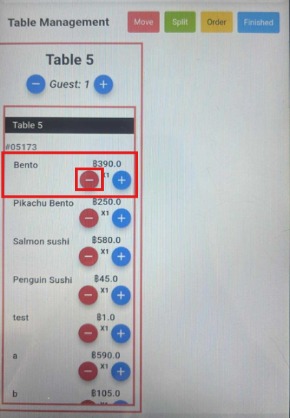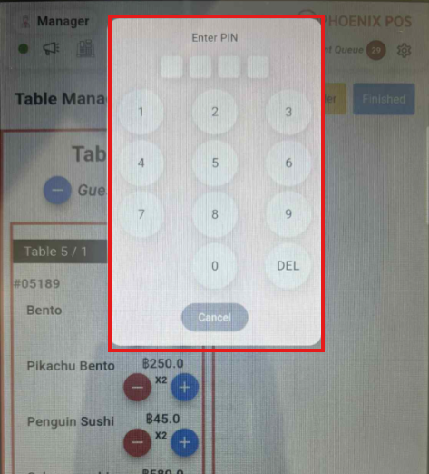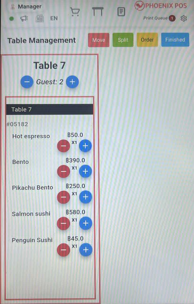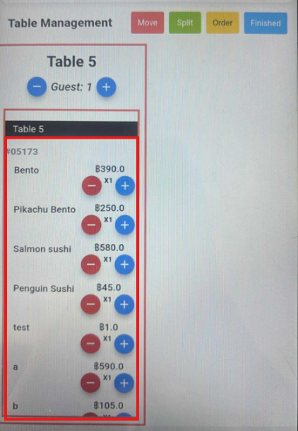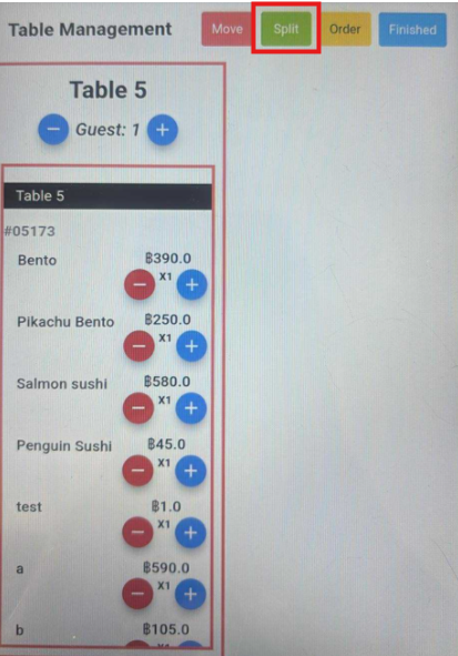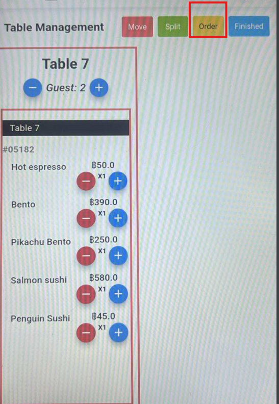 - เมื่อกดเลือกโตีะที่จะเข้ามาโต๊ะที่ต้องการจัดการ