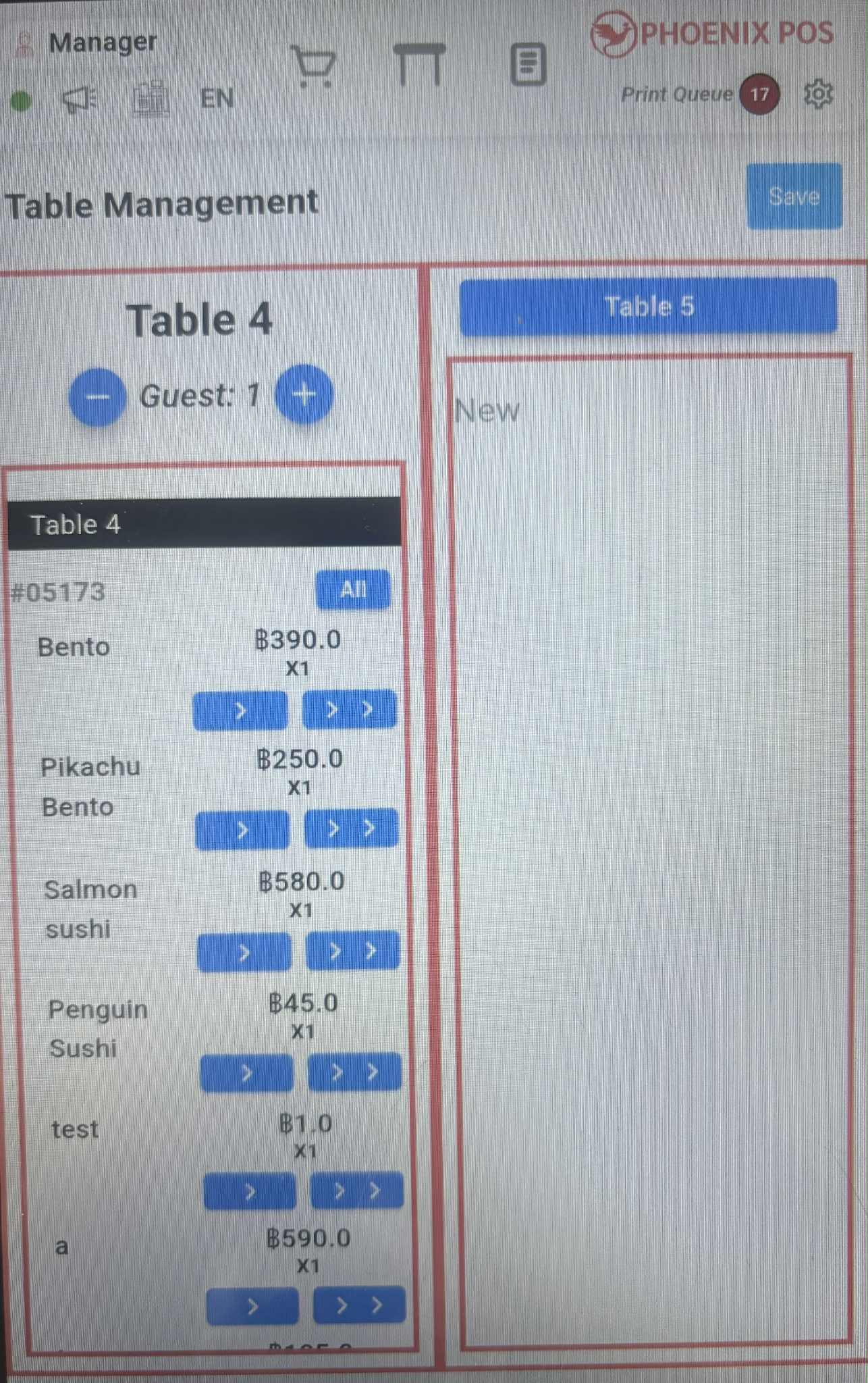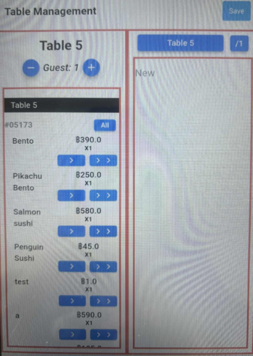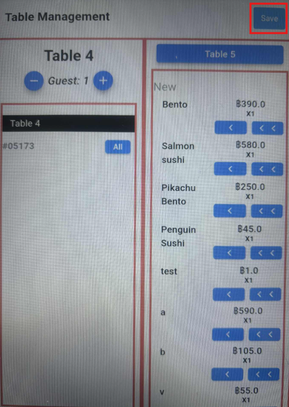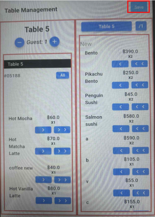 ย้าย Menu เรียบร้อยกด Save เพื่อยืนยันการย้ายโต๊ะ