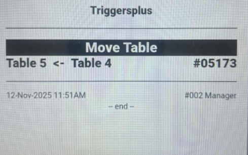 เมื่อกด Save จะปริ้นใบย้ายโต๊ะ