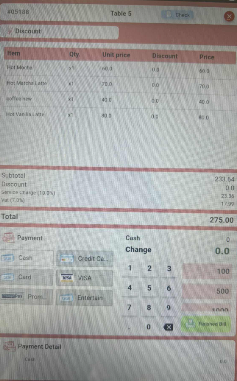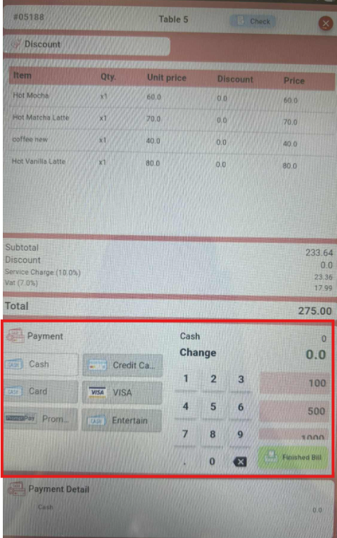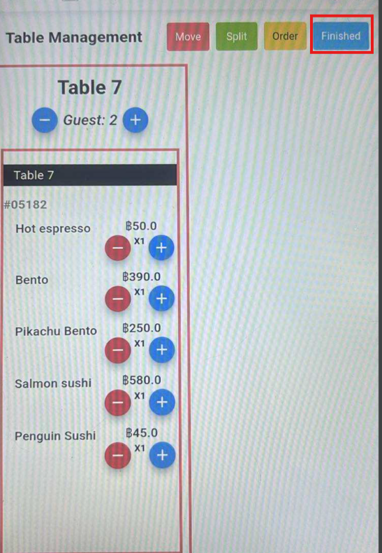 - Finished ปิดบิลเมื่อลูกค้าต้องการจ่ายเงิน
