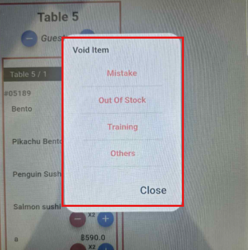 - กดเลือกโต๊ะที่ลูกค้าต้องการยกเลิกเมนู