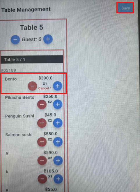 เลือกรายการ Menu ที่ต้องการแยกบิล และกด Save