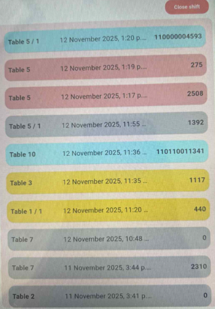 - สีเหลือง คือ ลูกค้านั่งที่โต๊ะและมี order menu เรียบร้อย