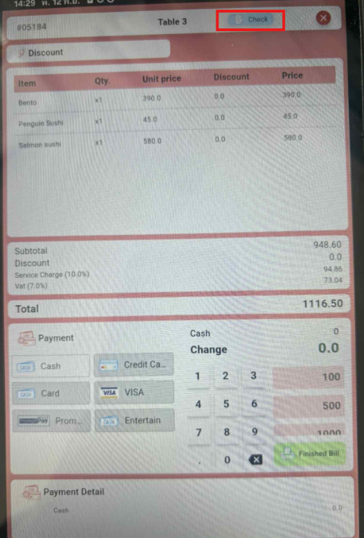 - กด Check เรียบร้อย จะได้บิลตามภาพ