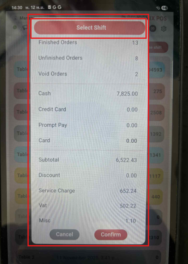 - กด Confirm เพื่อยืนยันการปิด Shift