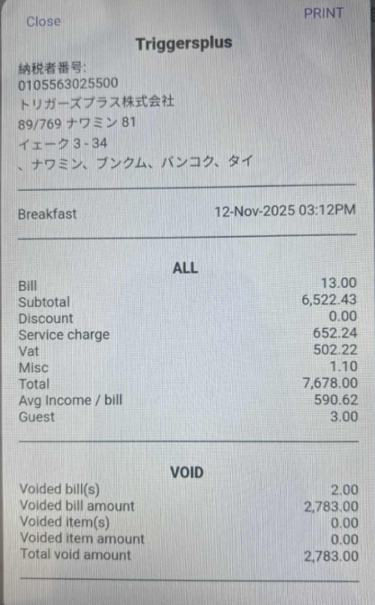- Close Shift เรียบร้อยจะได้บิล Close Shift ตามภาพ